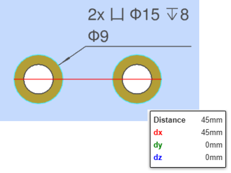 - →If you hover the mouse over the elements to measure (edges and faces of the model),