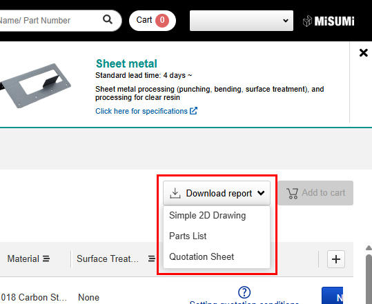 When ordering a part quoted on meviy, if the person handling purchases is different from the person who performed the quote, download the parts list and give it to the person making the purchase. You can use a CSV file to order quote parts from the Misumi web order system ordering screen.