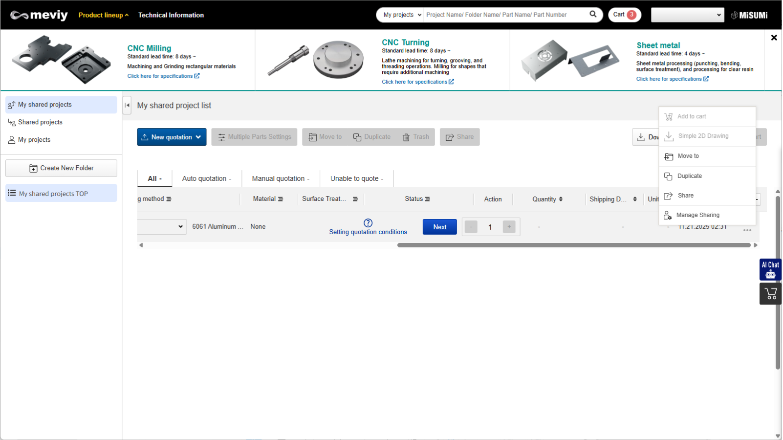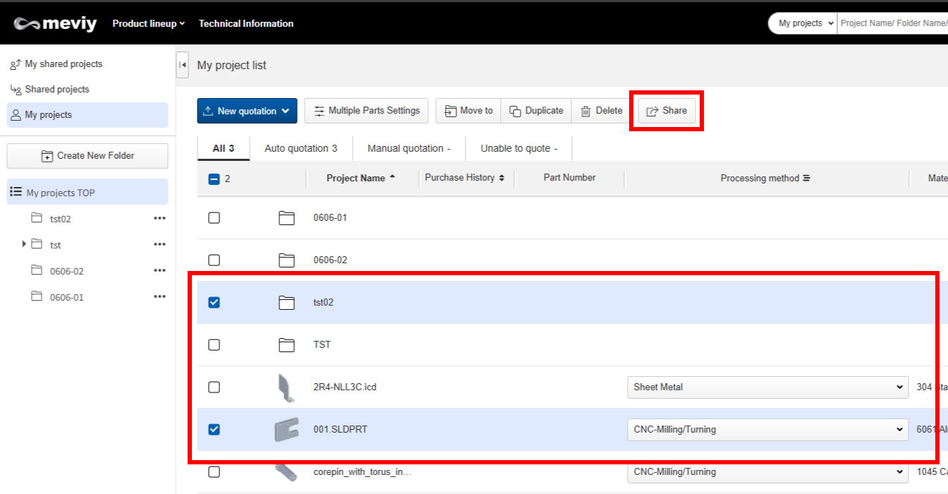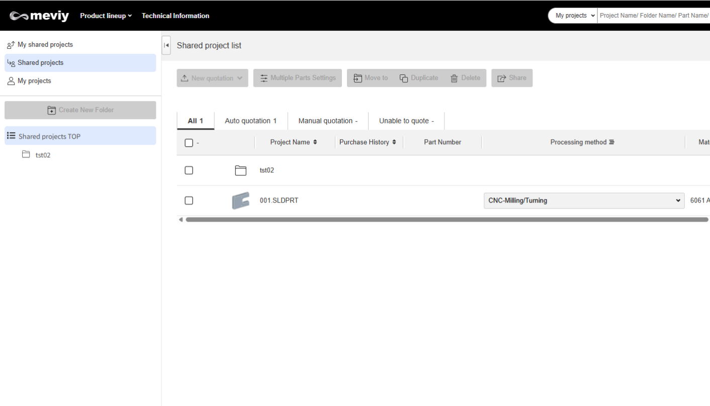 Projects uploaded to meviy can be shared.