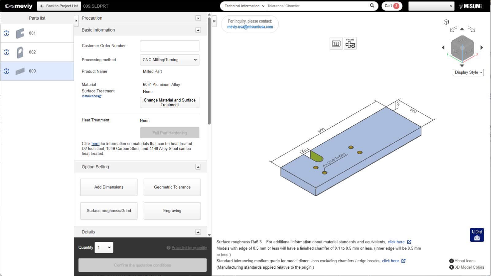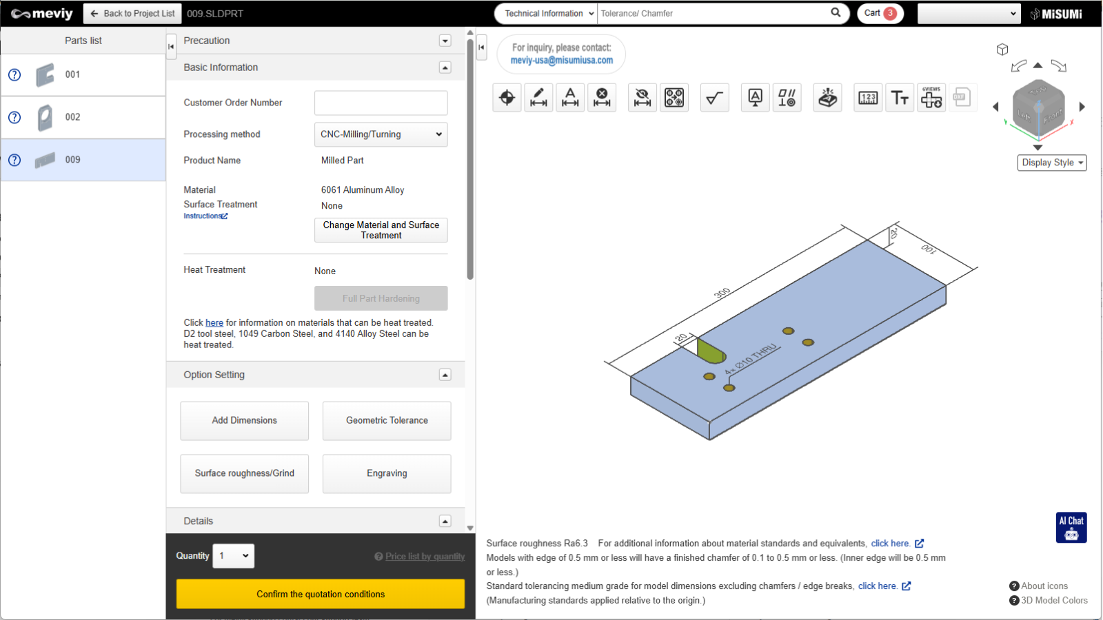 - Confirmation of quotation conditions (part number issue) / Request manual quotation: Not possible