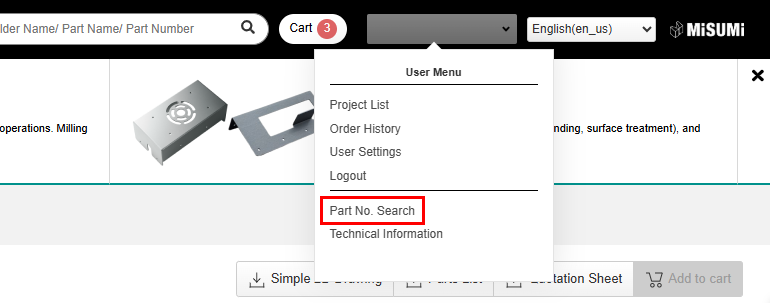 1.Click [Part No. Search] from the user menu in the project list screen.