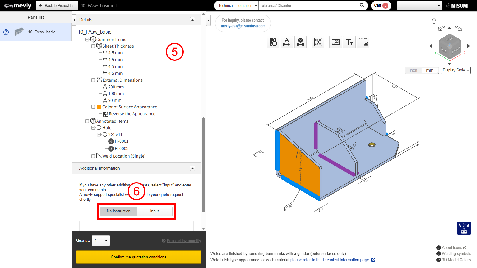 If you require additional processing, automatic quotation is not available. Select [Request manual quotation], and the meviy support team will respond later with your quote.
