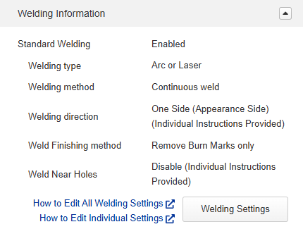 *Cases where individual instructions were set for all items: Welding Method, Welding Direction, Welding Near Hole