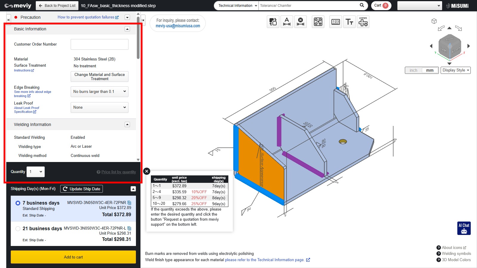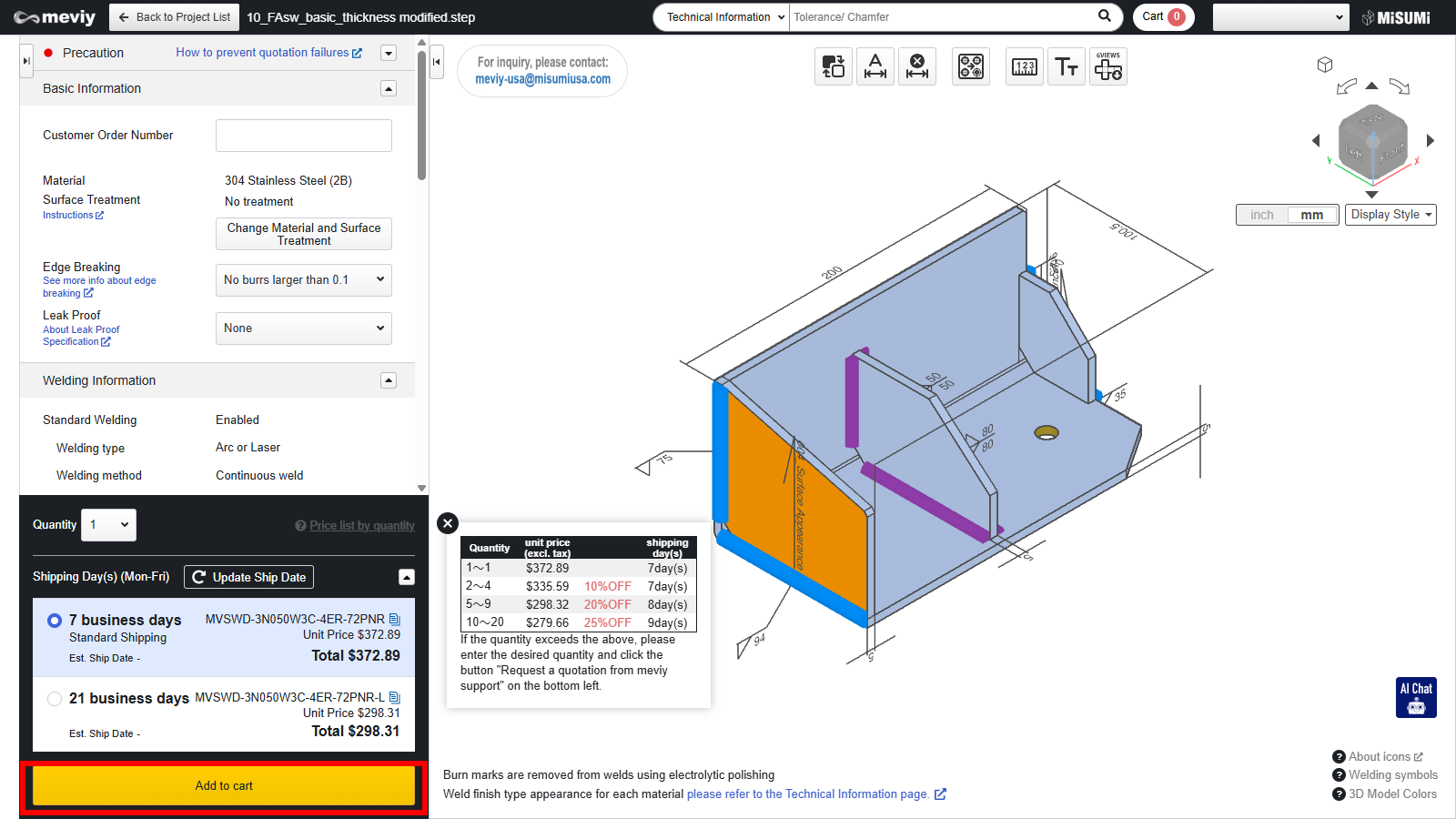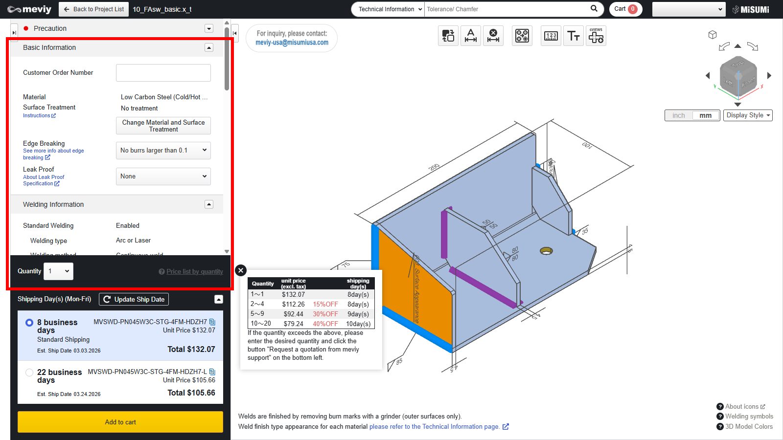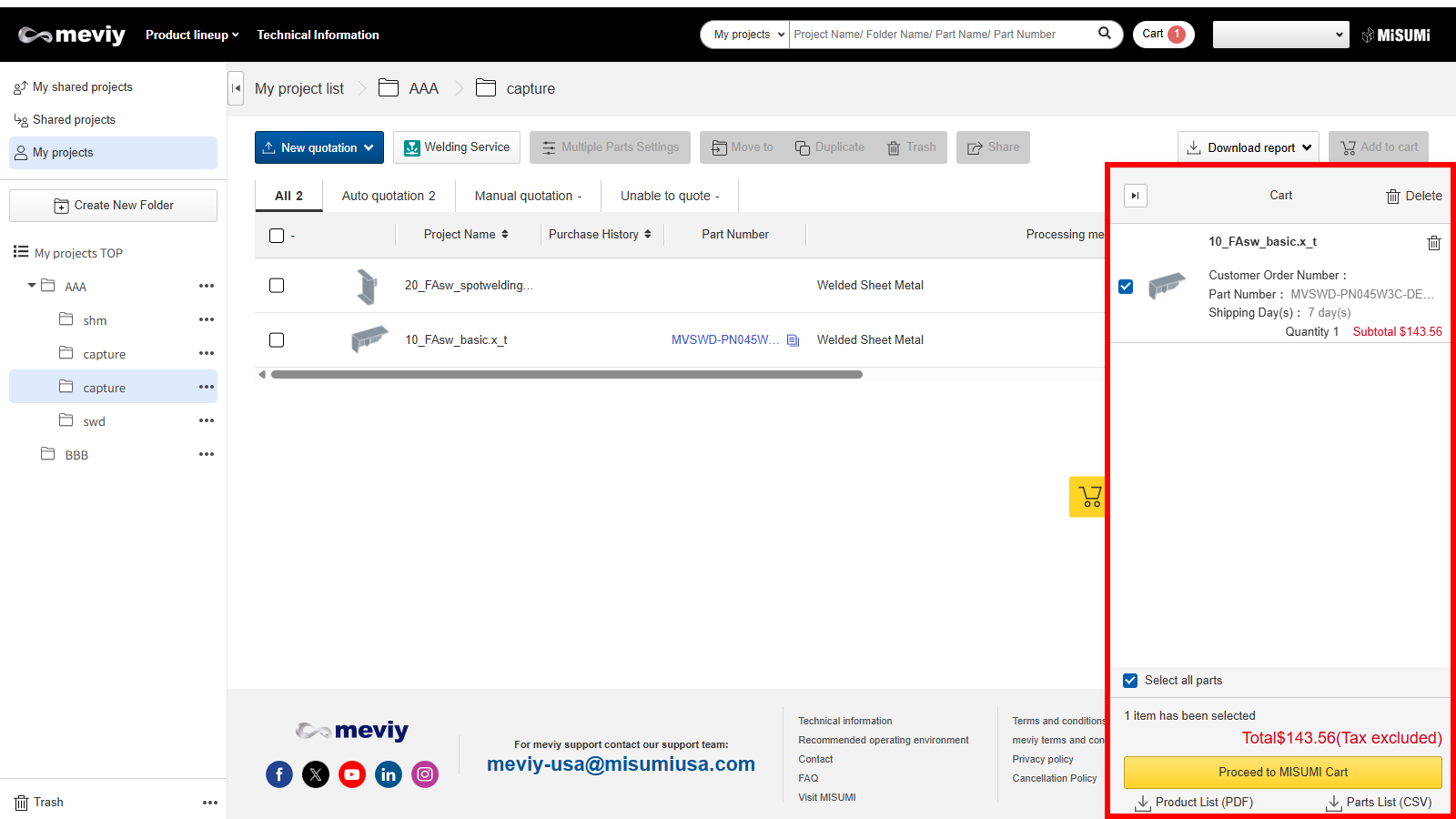 1. Return to the project list and add the parts you want to your cart to check the quotation results.