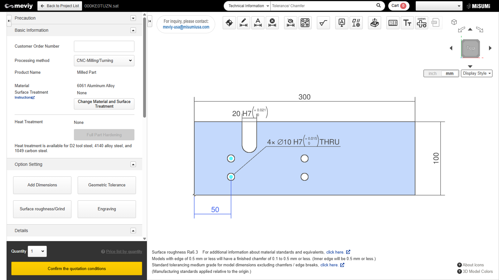 When uploading 3D CAD data, you can specify any dimensions/tolerances for parts where dimensions and tolerances are not displayed.