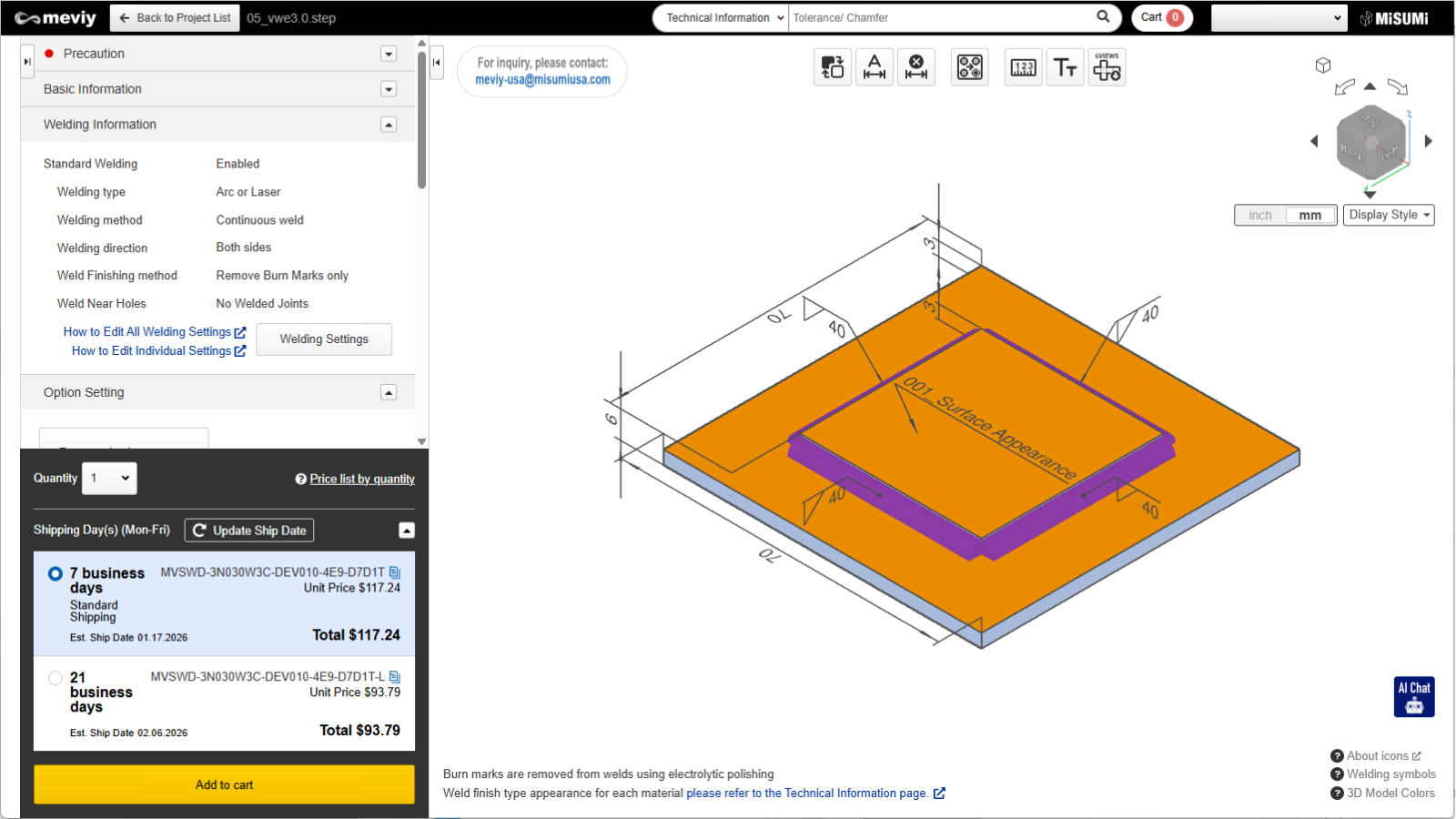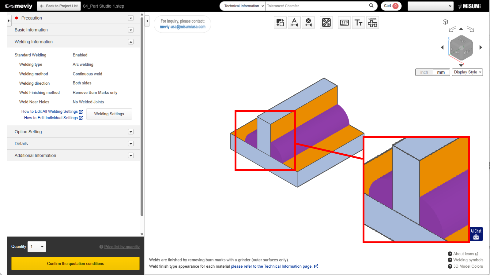 • Although welding is performed from the outer side during manufacturing, both sides are highlighted in purple in the 3D viewer to indicate that both sides are filled.