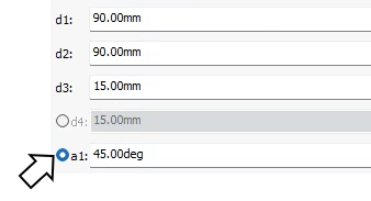 – Set [d1] to 90mm, [d2] to 90mm, [d3] to 15mm, [d4] to 15mm