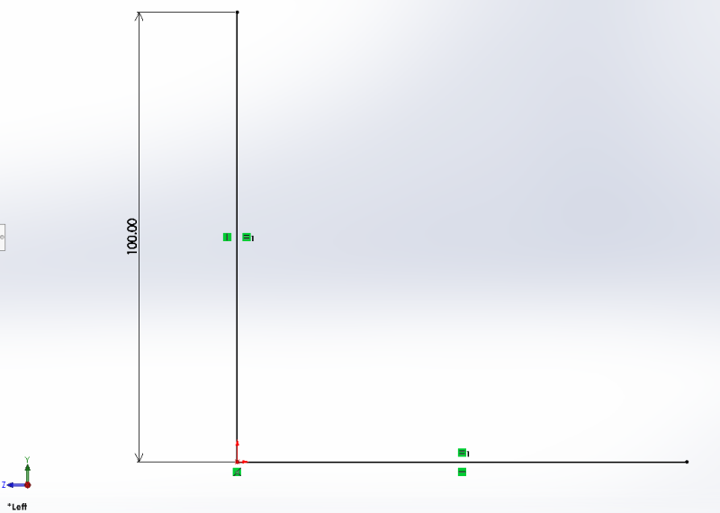 Create two straight lines (vertical and horizontal) and set the dimension to 100mm