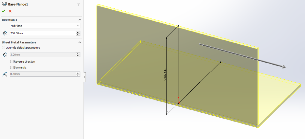Select [Sheet Metal] – [ Base Flange] , then select the [Right Side] plane in the drawing window