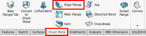 First step: Select [Sheet Metal] – [ Edge Flange ]