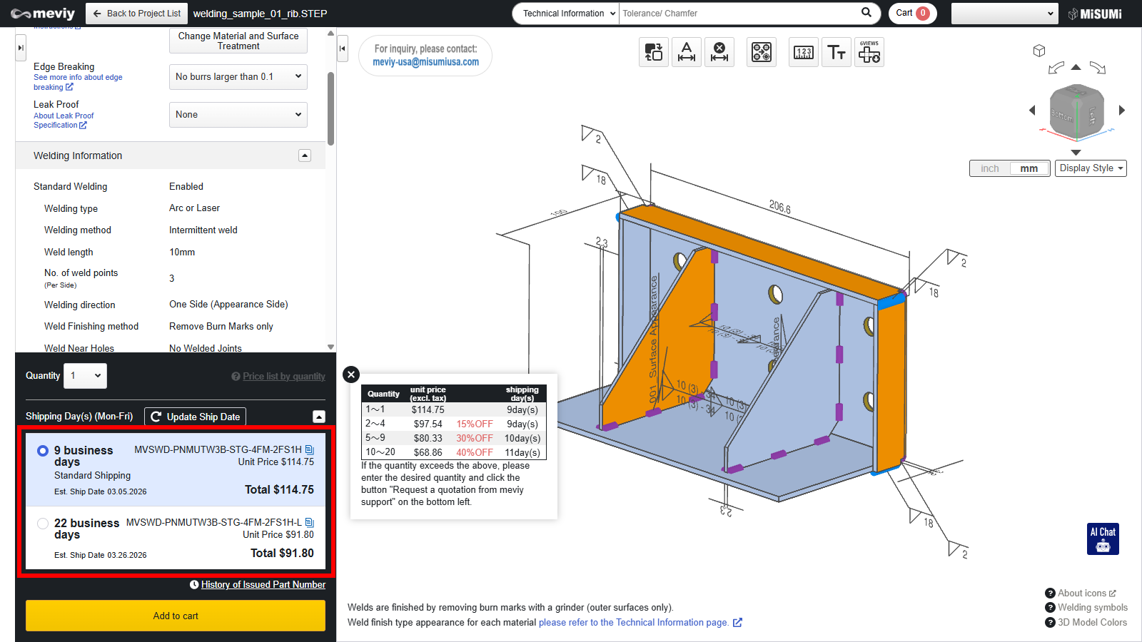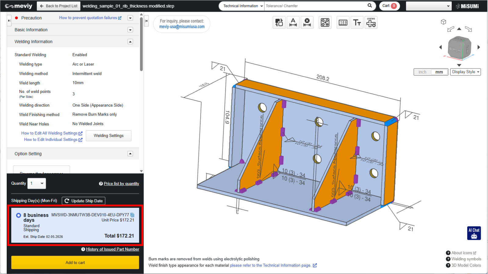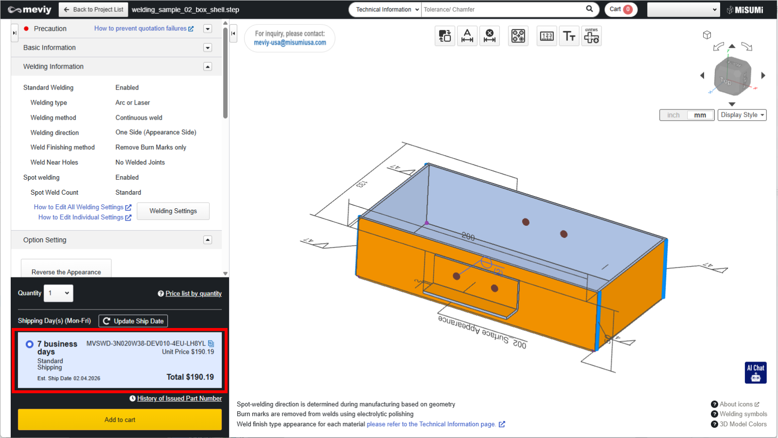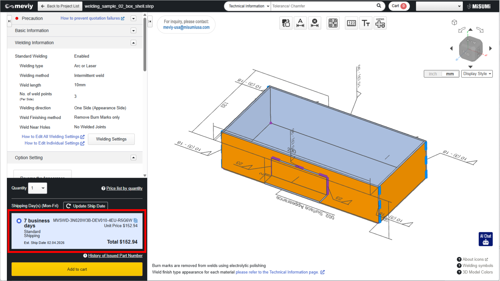 After editing the welding information, confirm the 3D viewer has updated and press the “Confirm Quotation Conditions” button.
