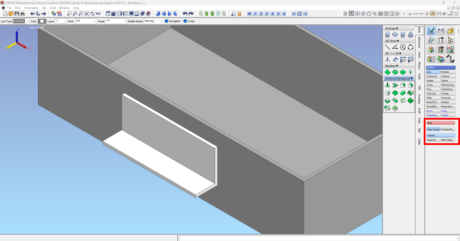 From the [Basic] tab – [ Shell] command, select [With Open Faces] – [ Inner]