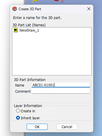 Select the target welded part data, enter the [Part Name] “ABC123-01001” i n [Part Information] , then click OK