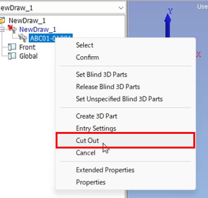 To recognize it as an external part, right-click the part reflected in the tree and select [Cut Out].