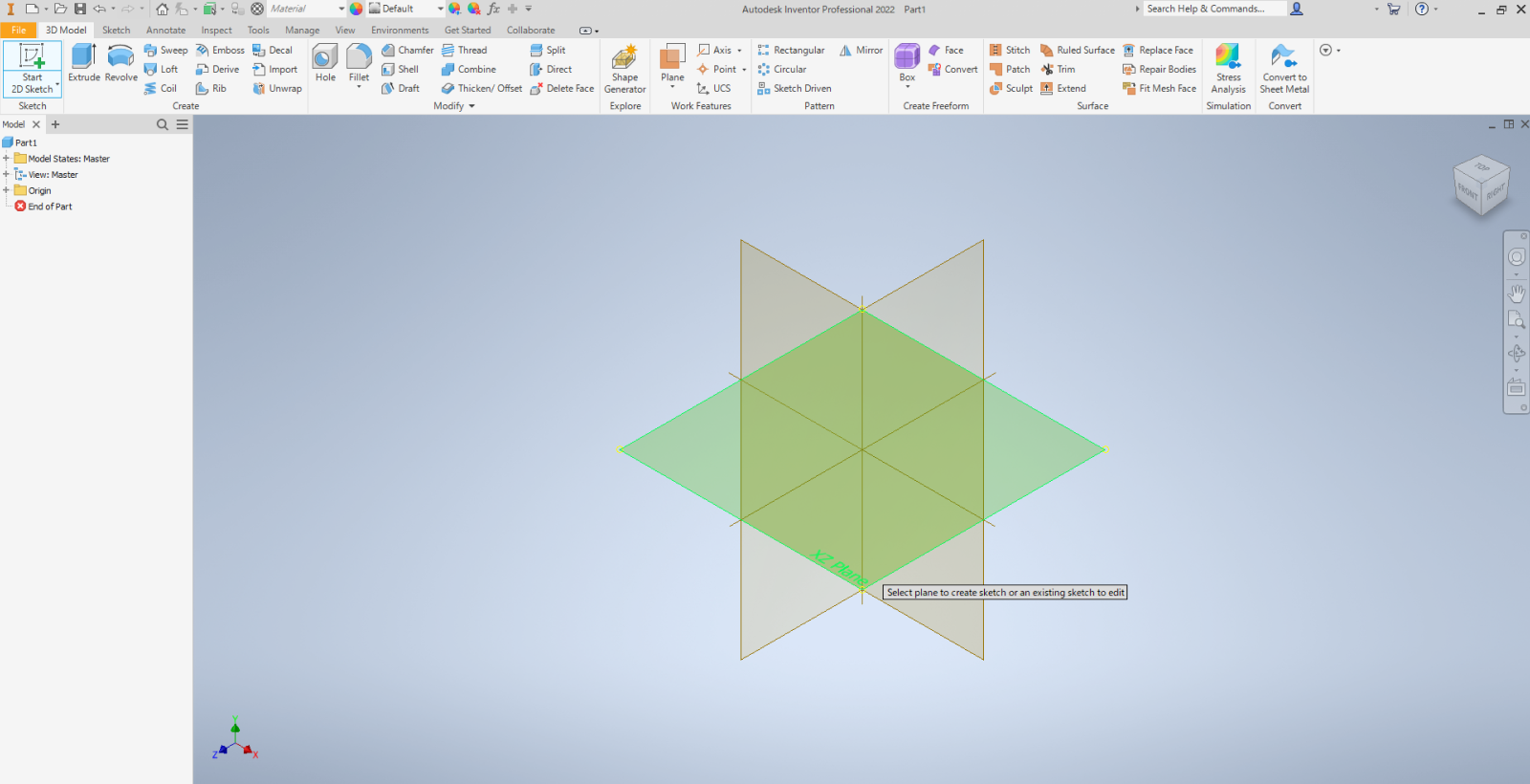Click [3D Model] – [Start 2D Sketch] and select the base plane.