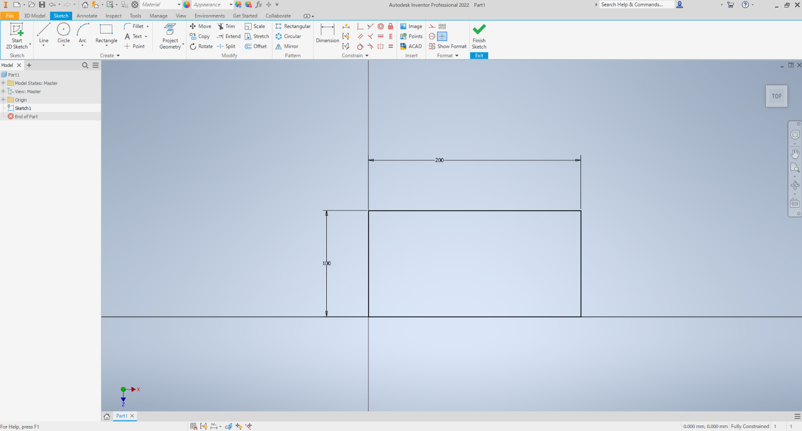 [Sketch] – Select [Rectangular] , fix the origin, and sketch