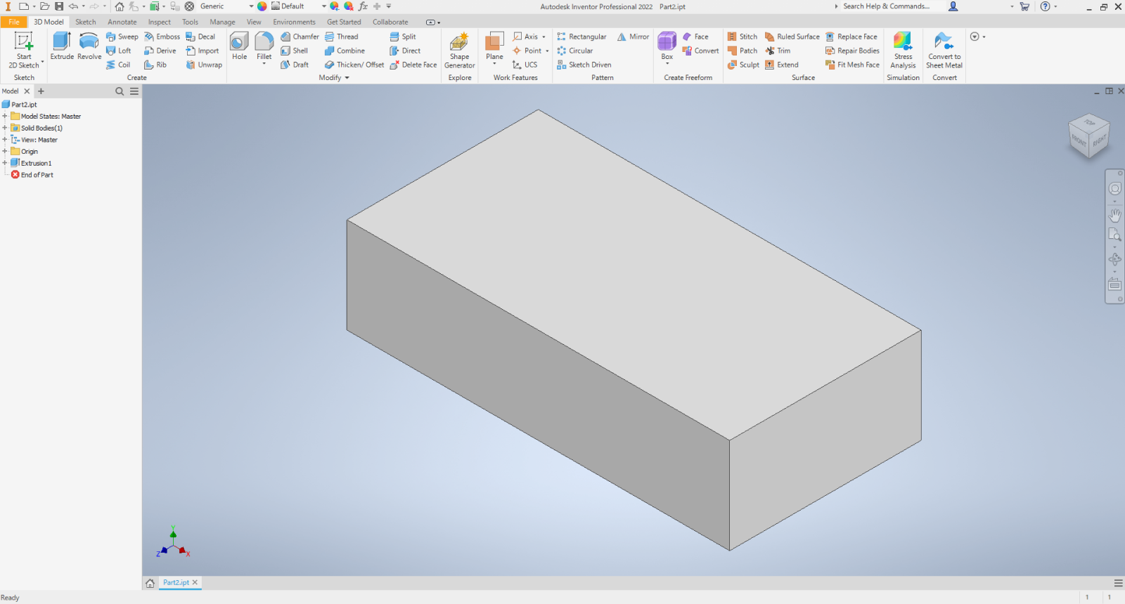 Inventor example: Click [Startup] – [Create New File] – [standard.ipt]