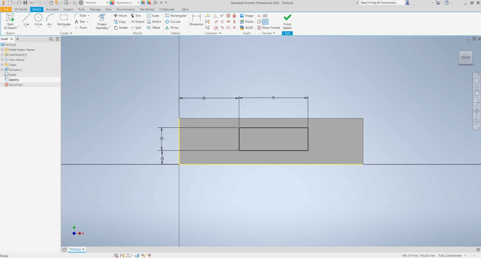 [Sketch] – [Rectangle] – Enter dimensions to create rectangle size (X75 Y25)