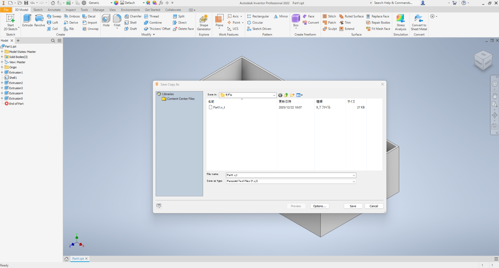 From [File Type], select Parasolid Text File (*.x_t) and click [Save]