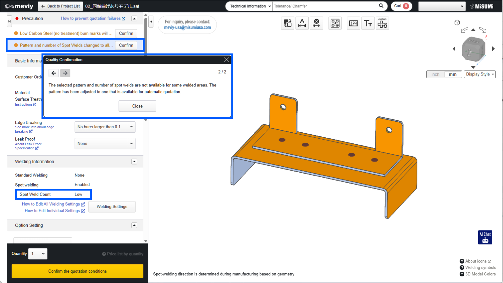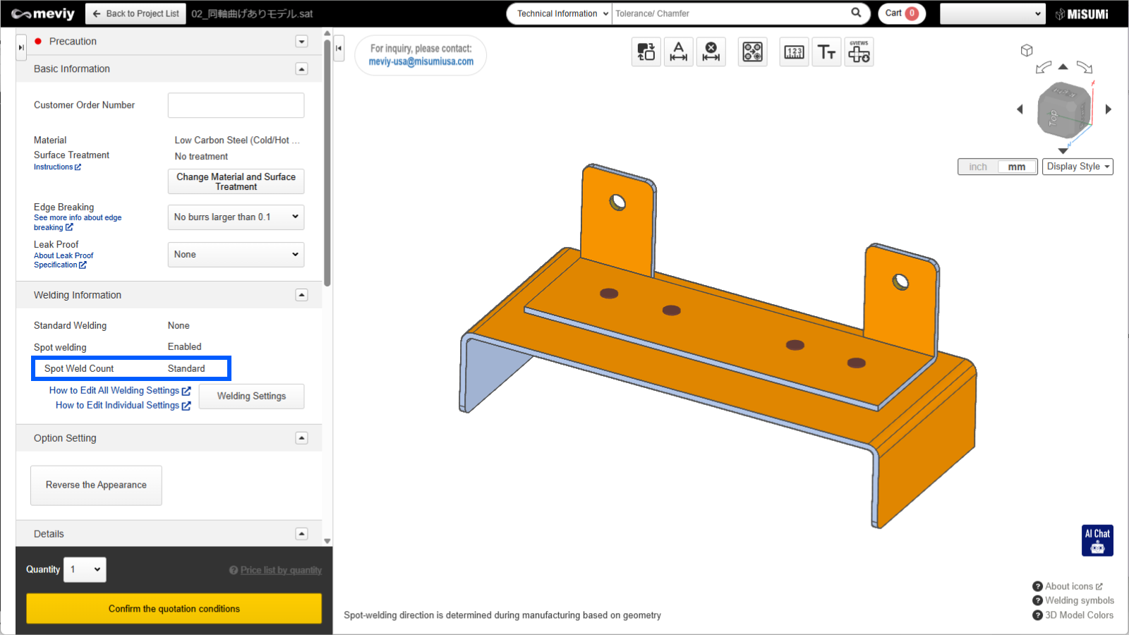 - Low: meviy will arrange the spots to reduce the number of spot welds per welded surface.