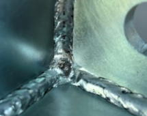 Example of poor surface treatment adhesion due to slag formation (black spot area)